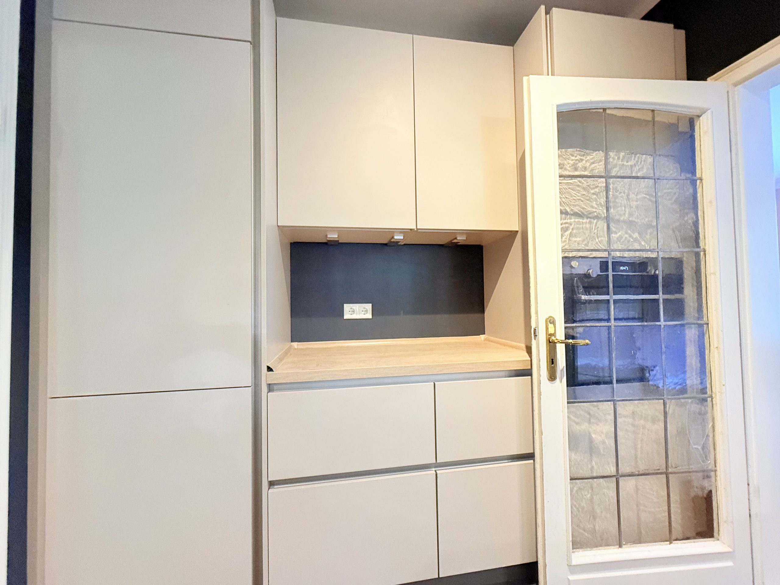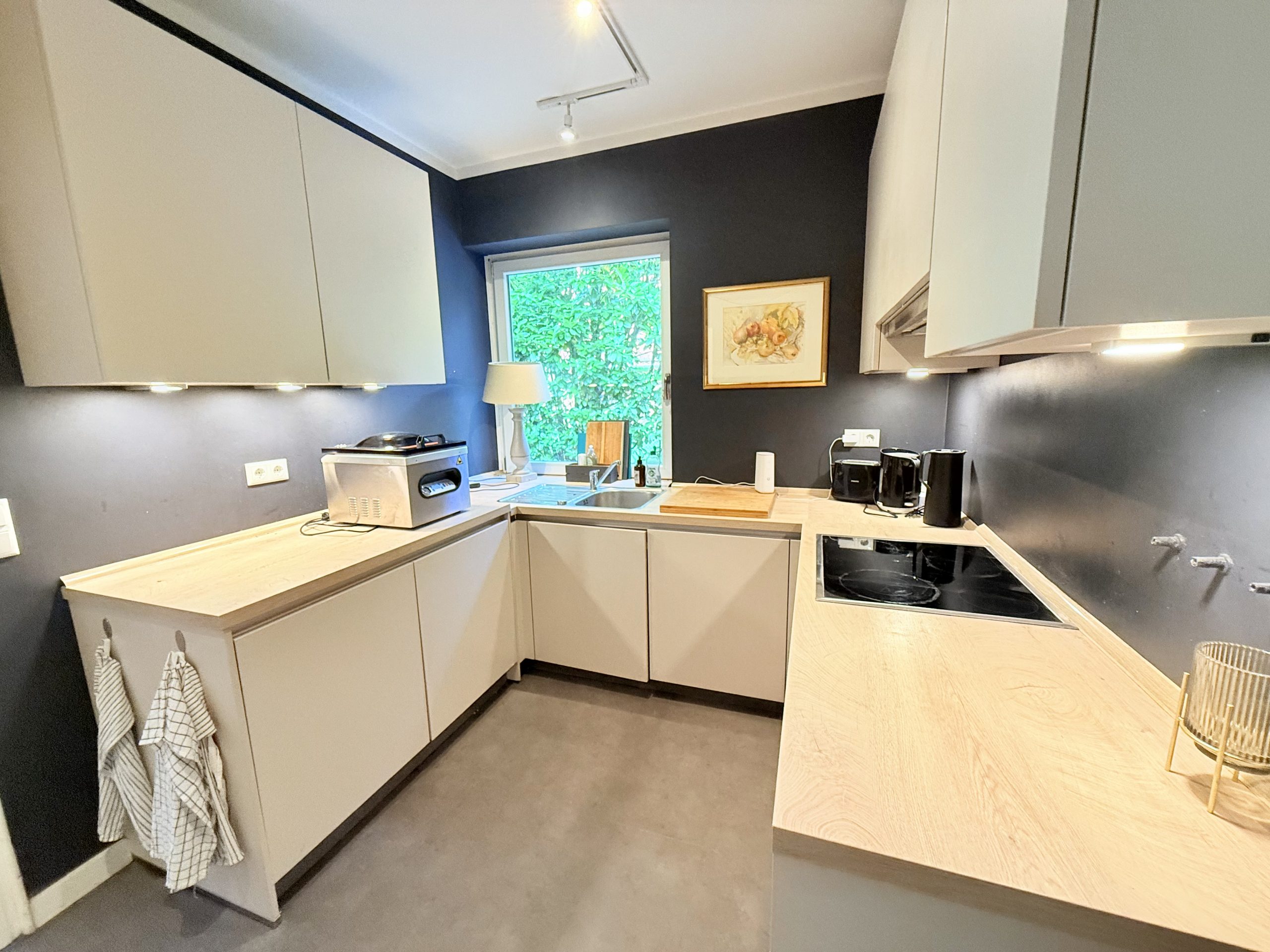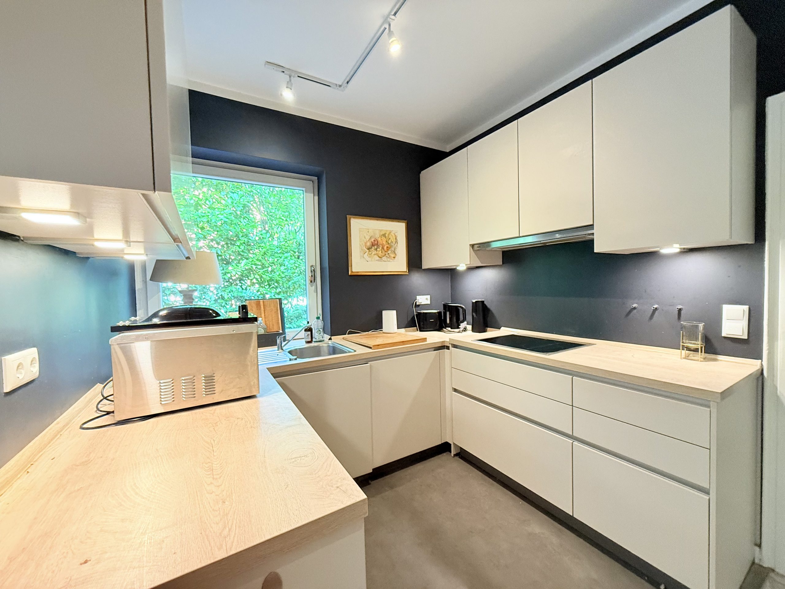 Die helle und freundliche Küche ist mit einer modernen Einbauküche aus 2020 und den dazugehörigen gängigen Elektrogeräten (Herd mit Backofen, Dunstabzugshaube, Geschirrspüler, Kühlschrank) voll ausgestattet.